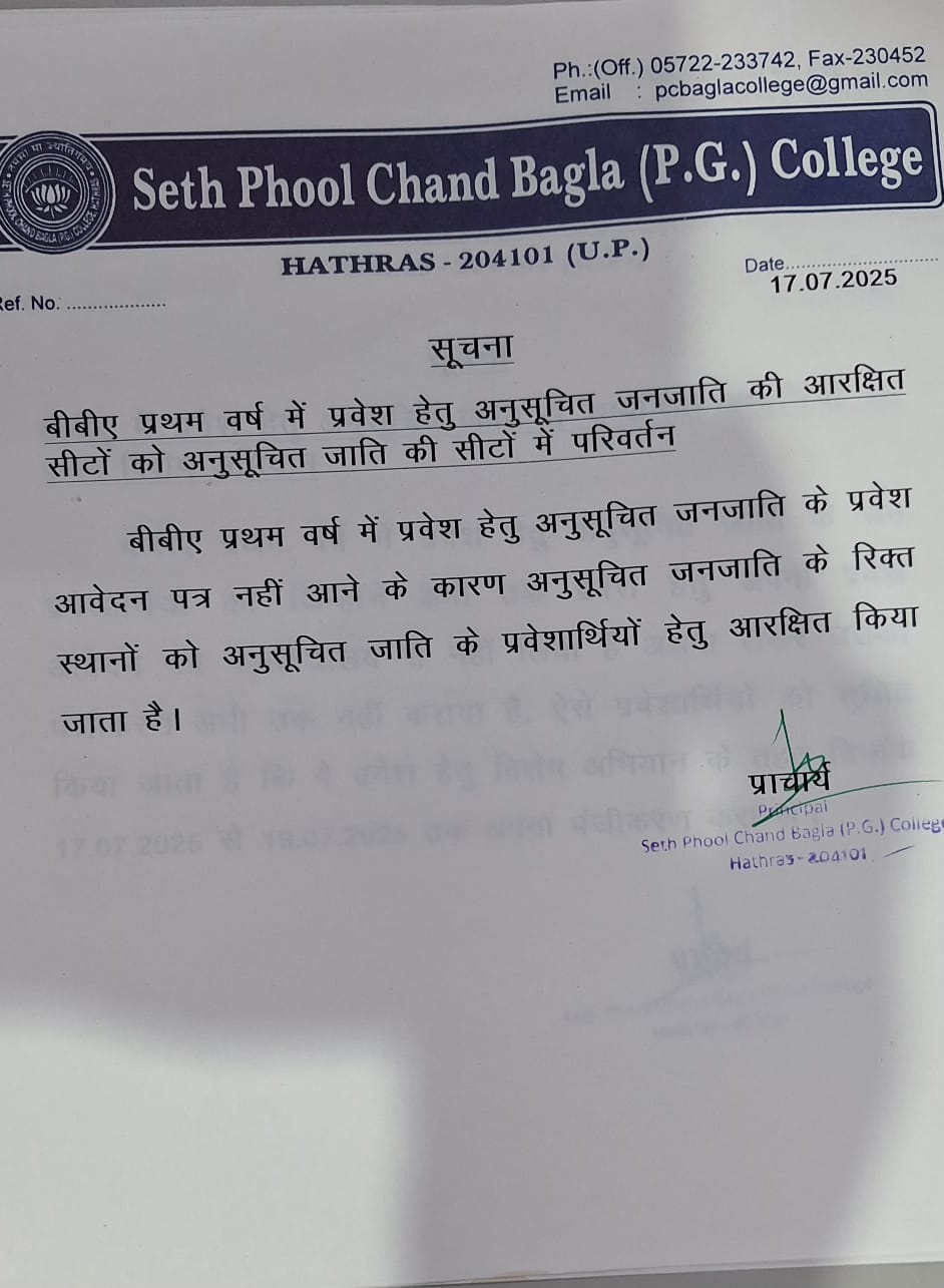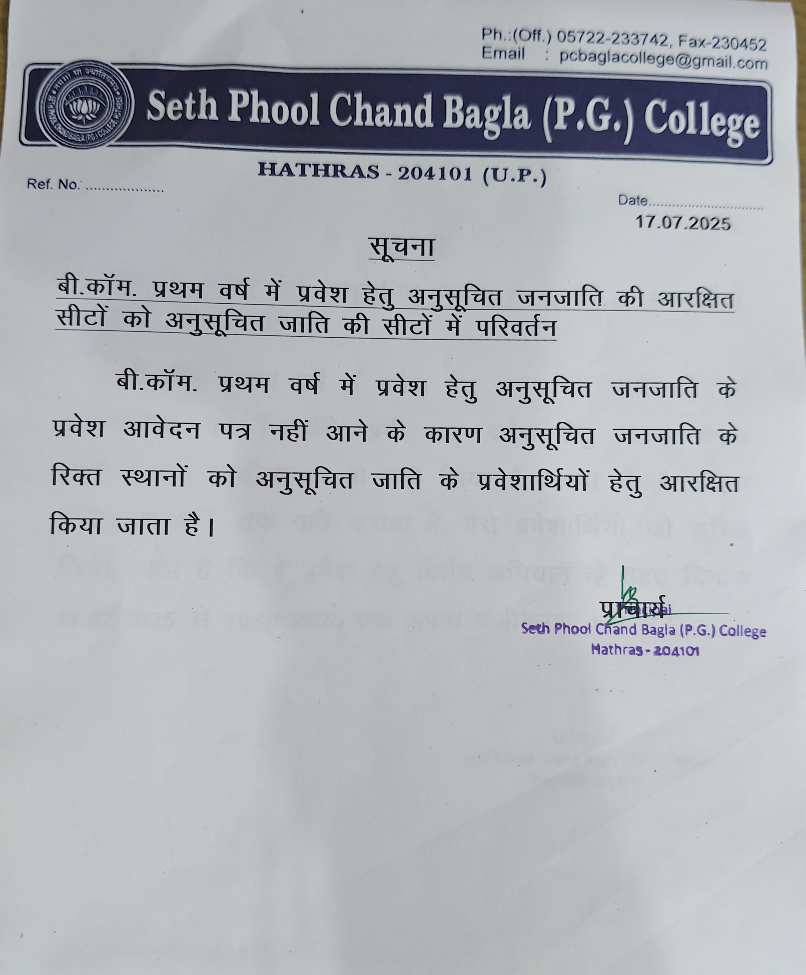- Conersion of Seat ST to SC B.Com. I