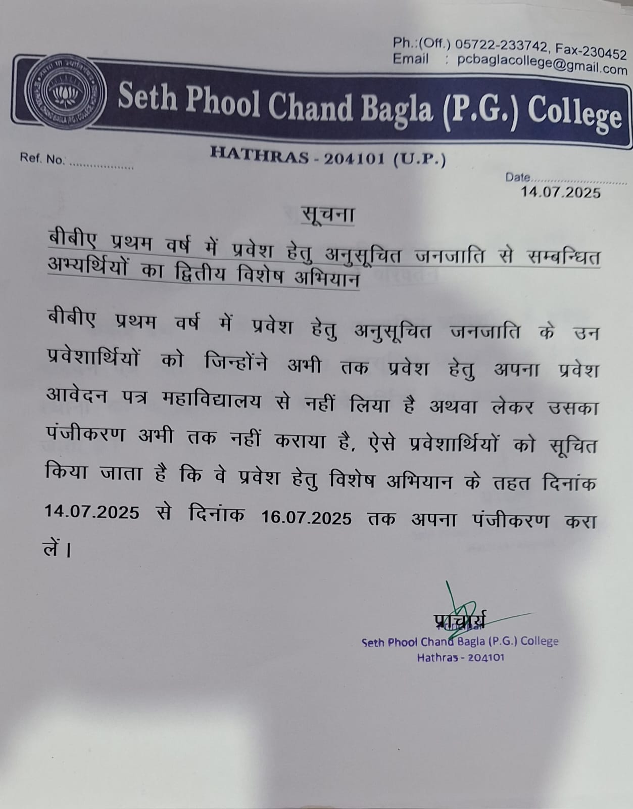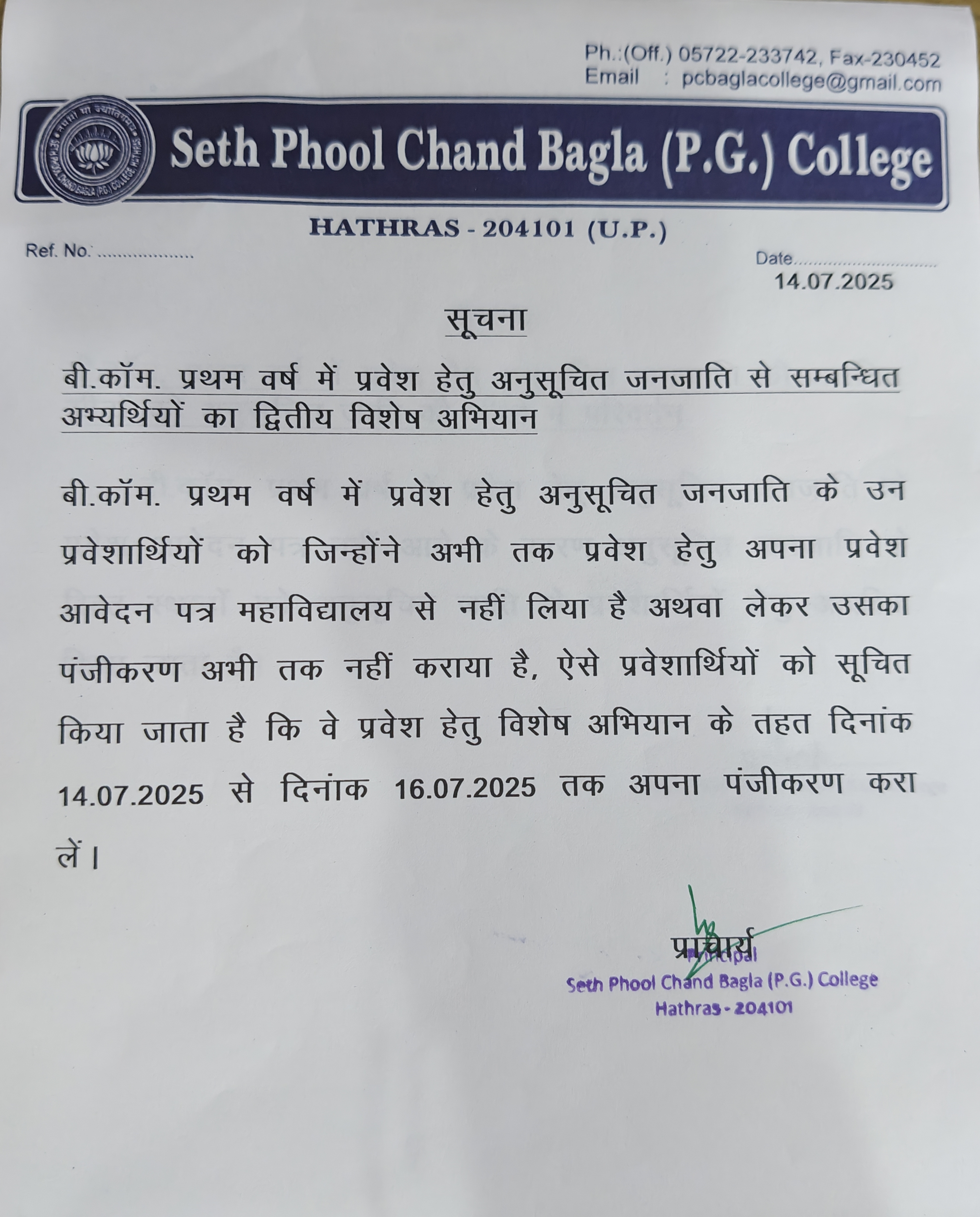 - B.com admission 2025-26 2nd special campaign for S.T.