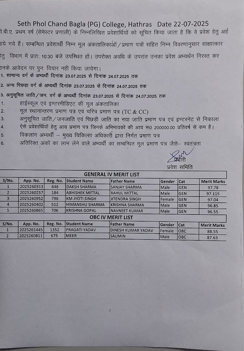 - B.com 4rth merit list 2025-26