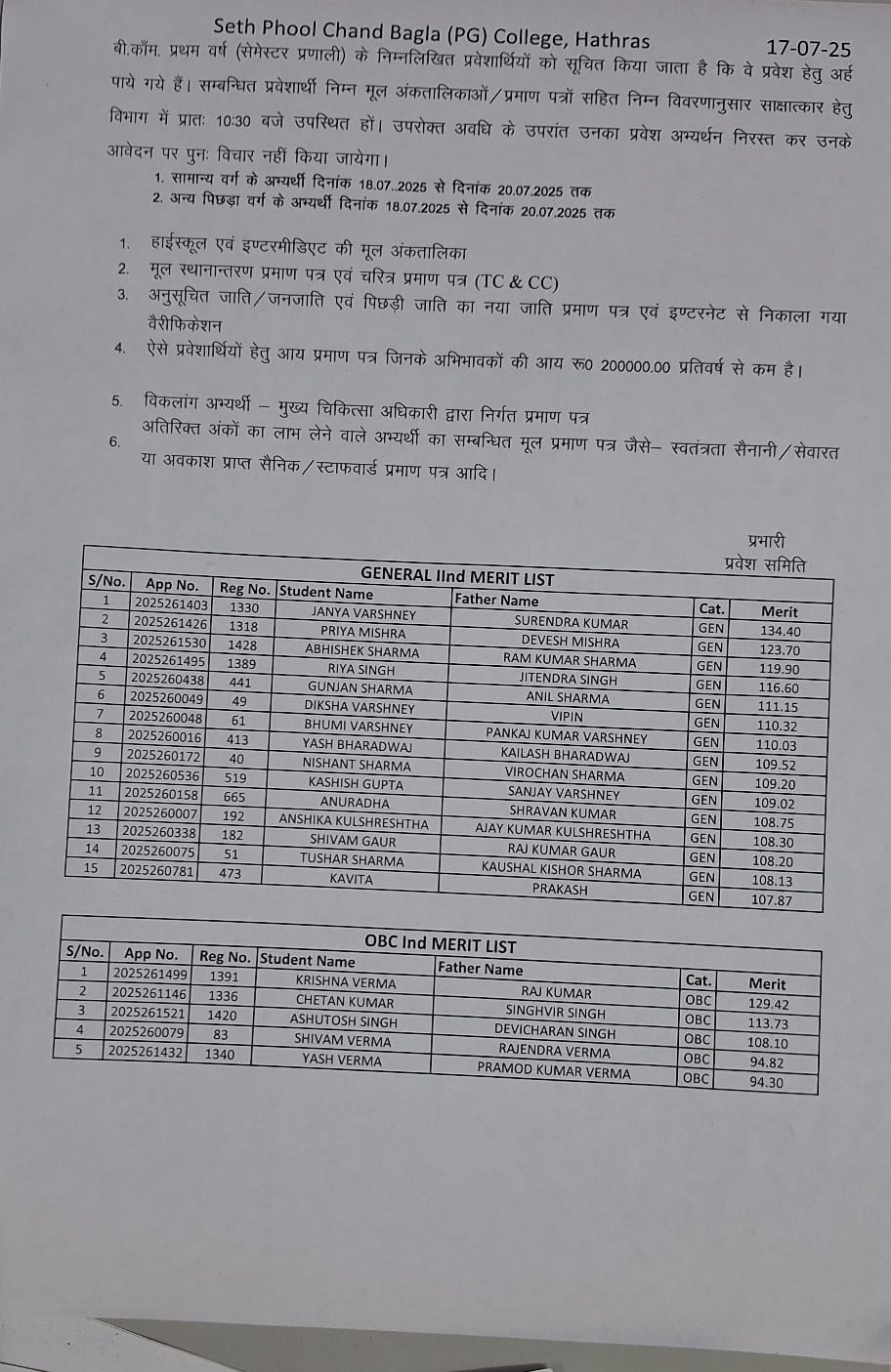 - B.com 6th and 4th merit list 2025-26